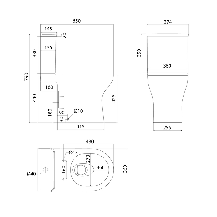 Унитаз-компакт, размер: 650x374x790, безободковый