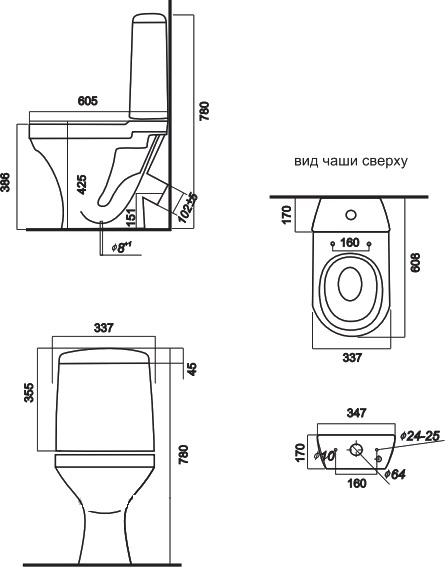 - Унитаз-компакт Sanita Аттика эконом 605х337х780 с сиденьем полипропилен
