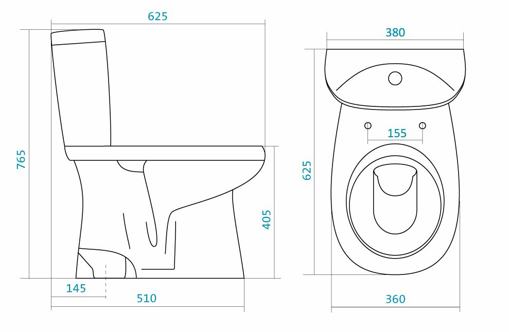 Унтиаз с бачком, вертикальным выпуском, двухрежимным сливом, дюропластовым сидением.