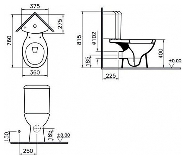 Унитаз-компакт угловой Vitra Arkitekt с сиденьем 360х760х815 для людей с ограниченными возможностями здоровья (9754B003-7200)
