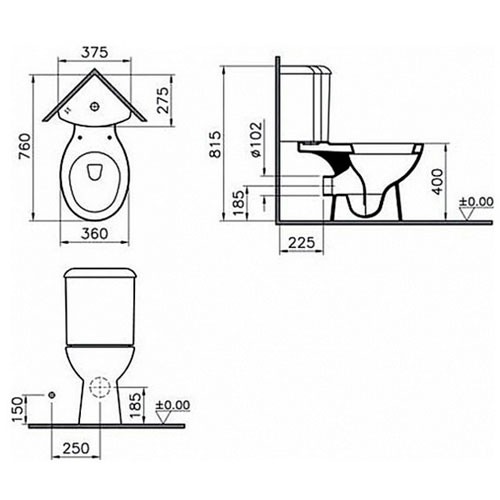 Унитаз-компакт угловой Vitra Arkitekt с сиденьем микролифт 360х760х815 для людей с ограниченными возможностями здоровья (9754B003-7201)