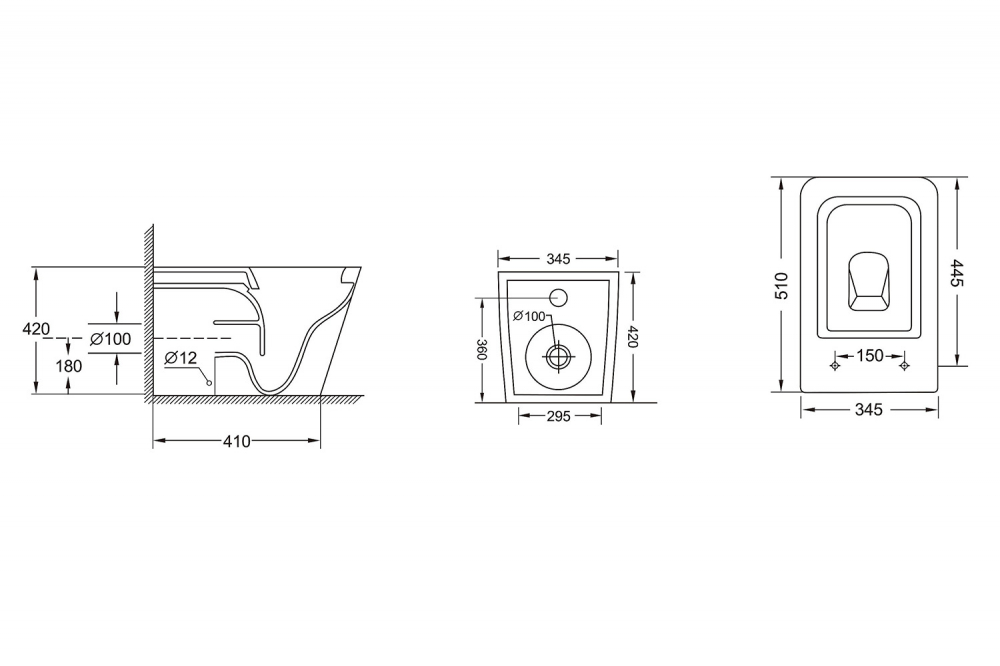 Унитаз напольный ABBER Rechteck белый, безободковый (AC1211)