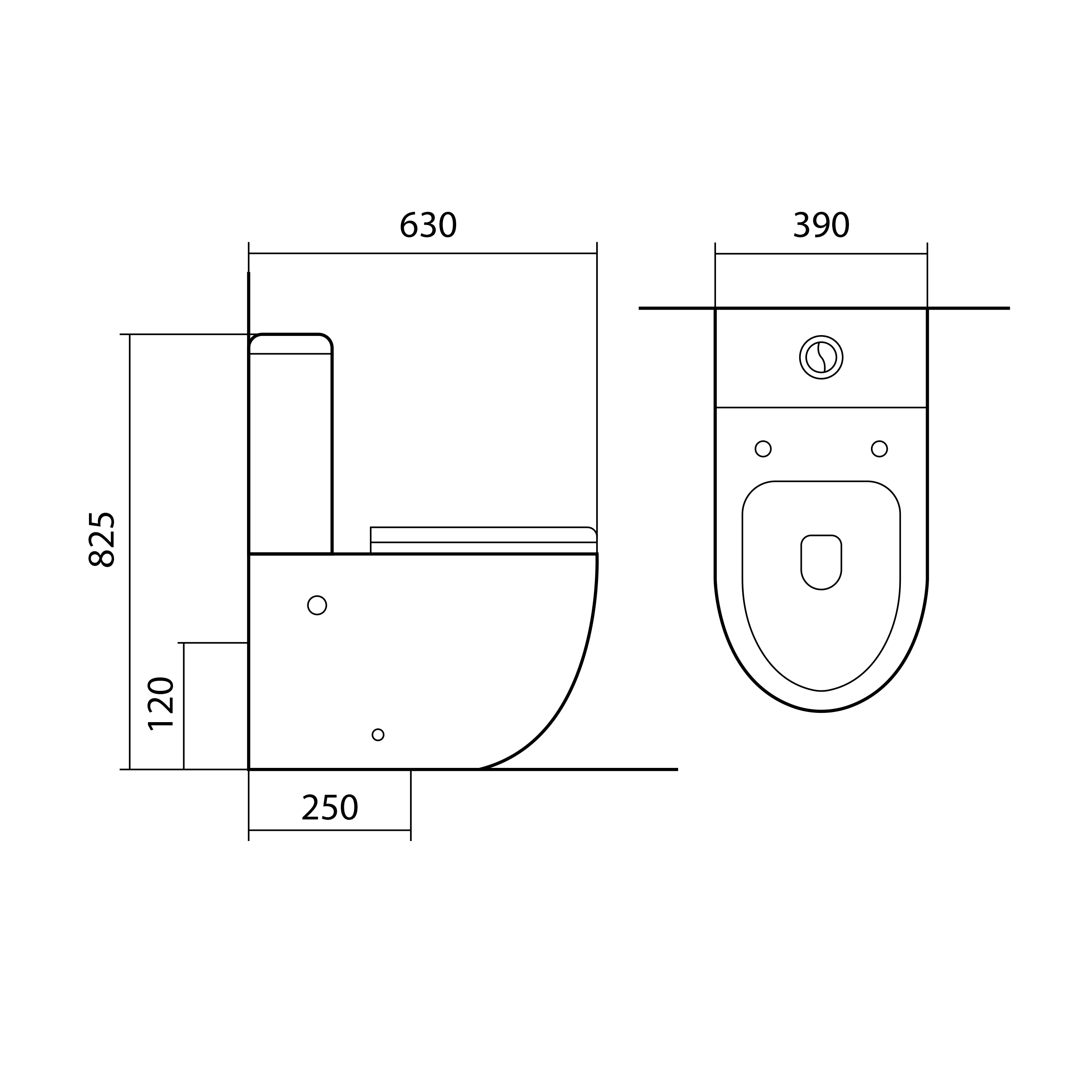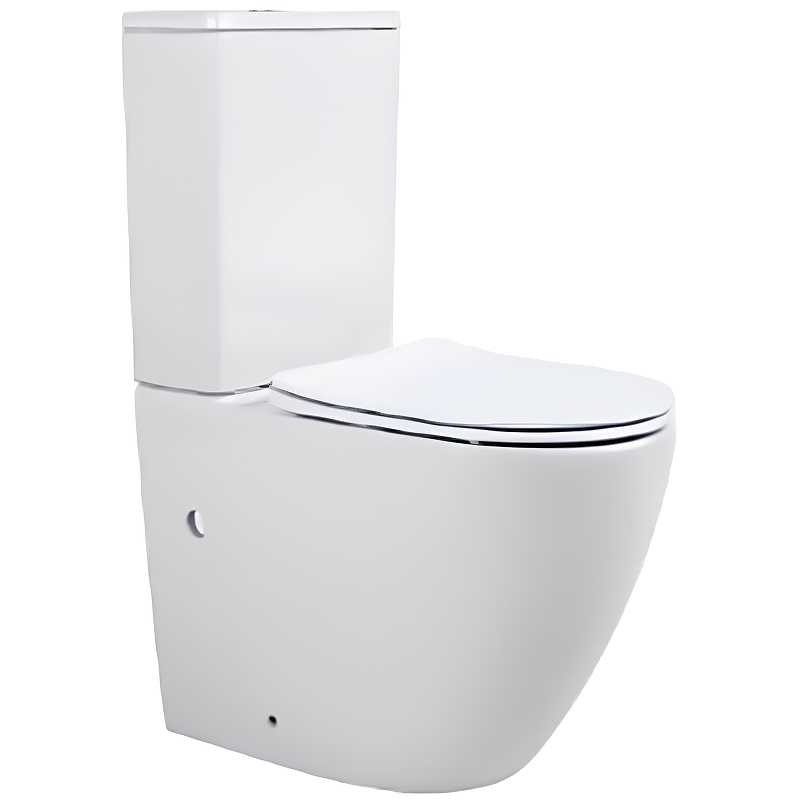 Унитаз напольный безободковый с бачком 630х390х825мм, горизонтальный выпуск, тонкое сиденье с механизмом плавного закрывания Soft Close, система слива Geberit, крепеж