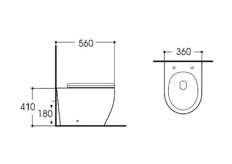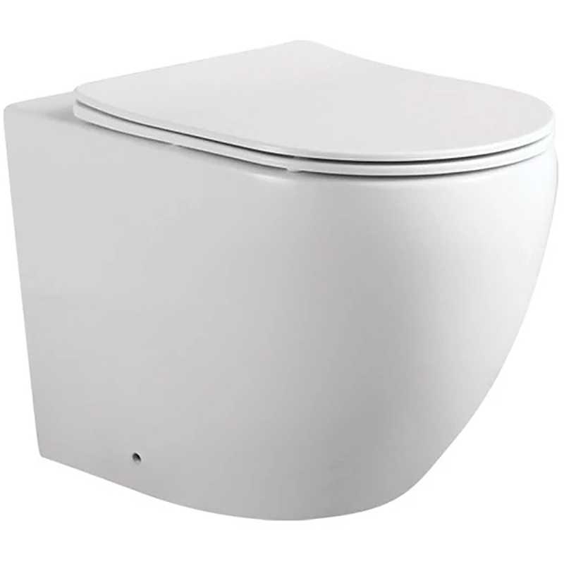 Унитаз напольный приставной безободковый 560х360х410мм, горизонтальный выпуск, тонкое сиденье с механизмом плавного закрывания Soft Close, крепеж