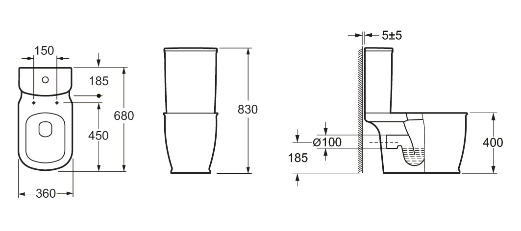 Горизонтальный выпуск P-Trap, слив по всему периметру чаши.