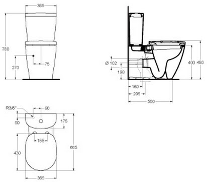 Унитаз напольный Ideal Standard Connect 400x665x365 без бачка и сиденья (E803701)