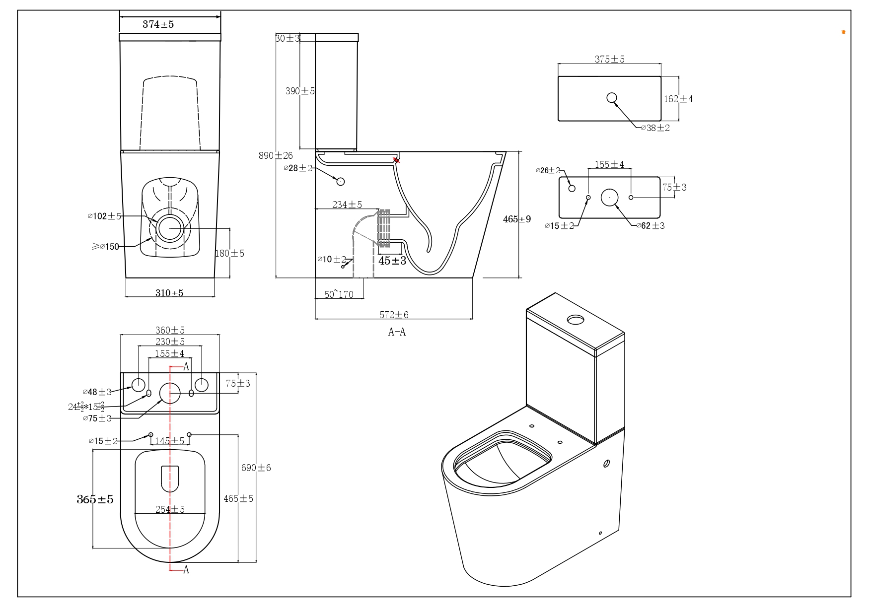 Модель отличается увеличенными габаритами по сравнению со стандартными унитазами: высота чаши превышает стандарт и составляет 50 см.