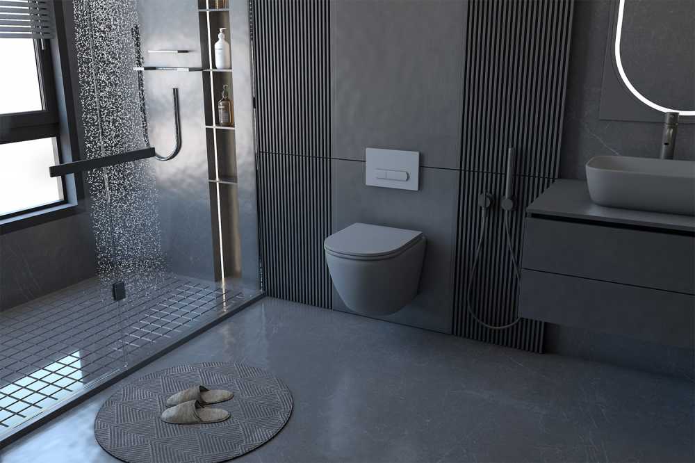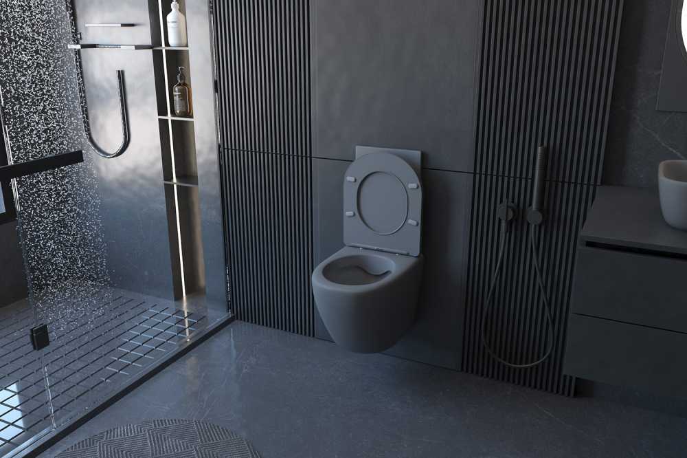 Унитаз подвесной Abber Bequem безободковый, серый матовый (AC1101MG)