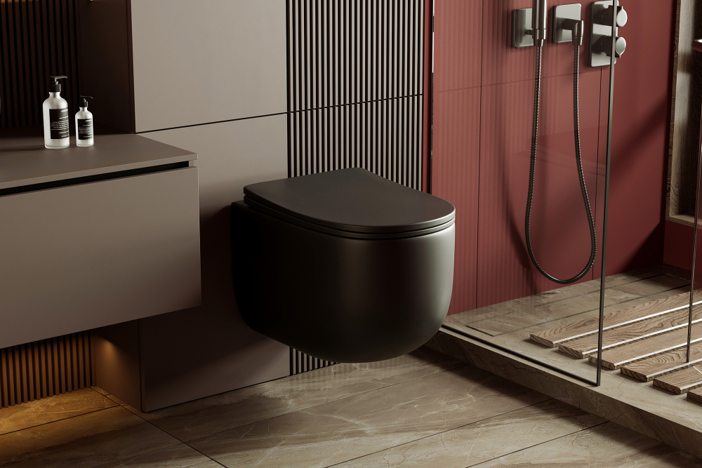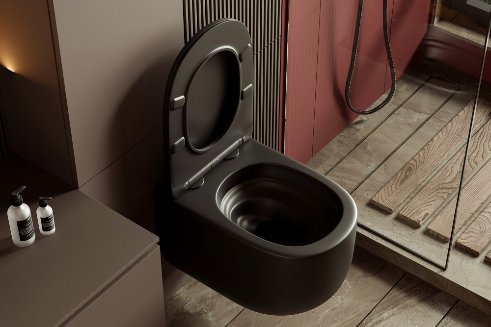 Унитаз подвесной Abber Bequem безободковый, смыв торнадо черный матовый (AC1104TMB)