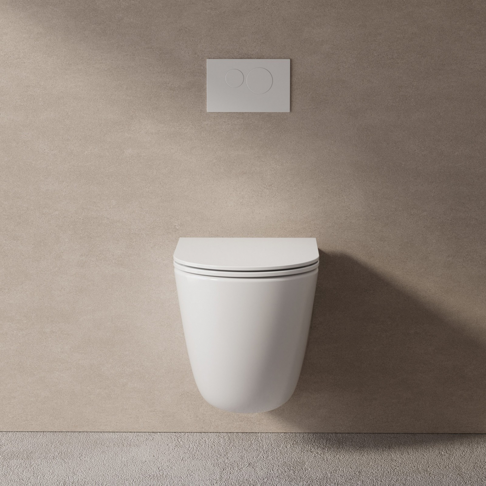 Унитаз подвесной Abber Bequem безободковый, смыв торнадо, с закрытым дном белый (AC1132TC)