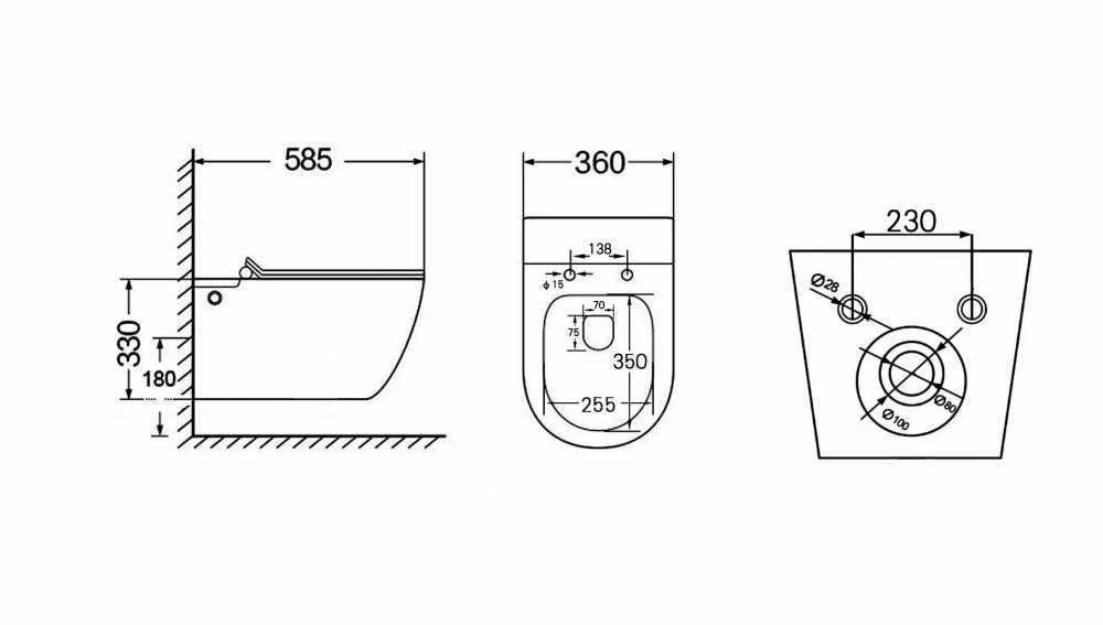 Унитаз подвесной Abber Bequem с импульсным смывом, белый (AC1105P)