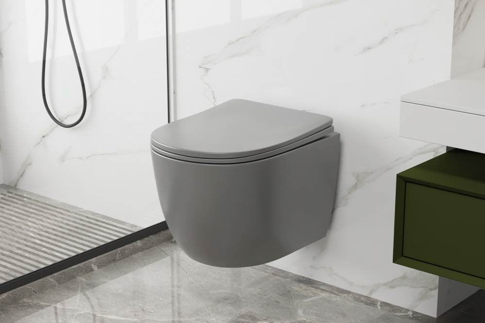Унитаз подвесной ABBER Bequem серый матовый, безободковый (AC1103MG)