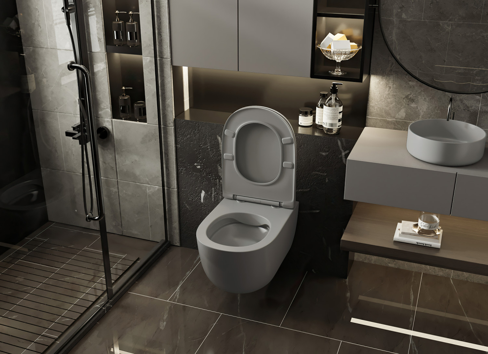 Унитаз подвесной ABBER Bequem серый матовый, безободковый (AC1104MG)