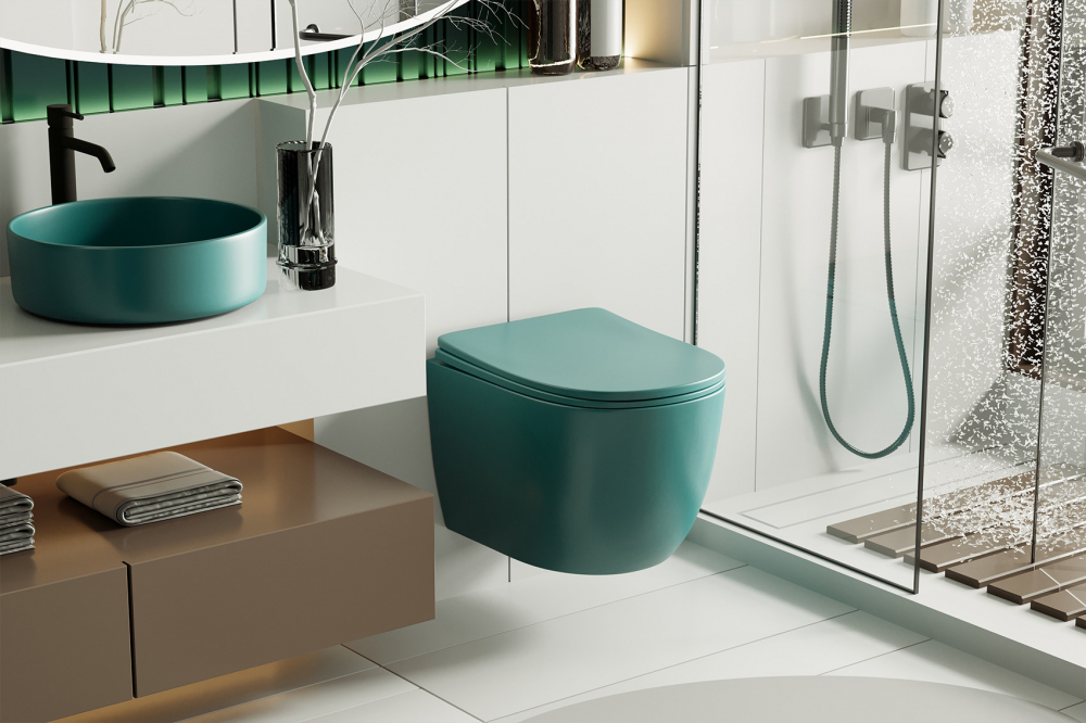 Унитаз подвесной ABBER Bequem темно-зеленый матовый, безободковый (AC1101MBG)