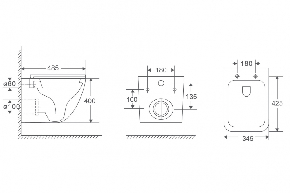 Унитаз подвесной Abber Rechteck безободковый, смыв торнадо, с закрытым дном белый (AC1220TC)