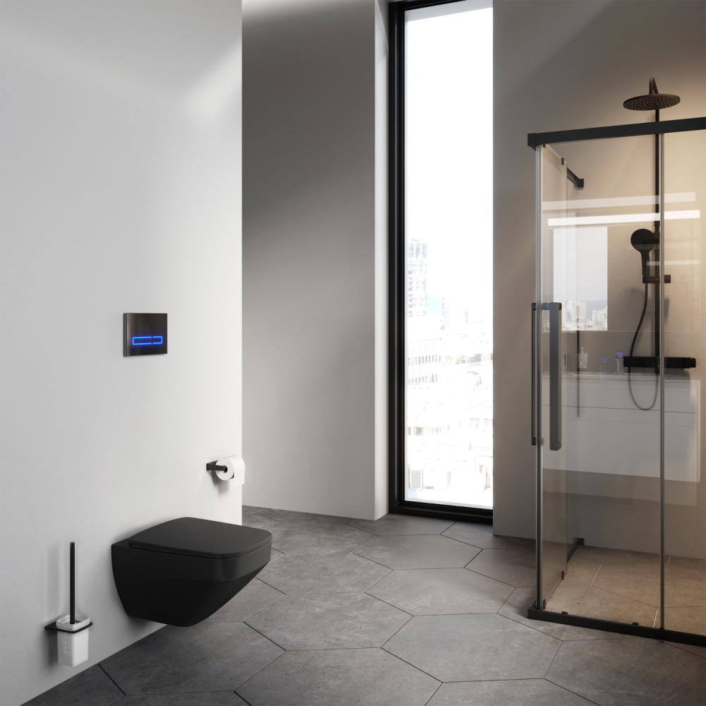 Современный дизайн и новая квадратная форма в керамике АМ.РМ. Теперь и в черном матовом исполнении. FlashClean — новое поколение безободковых унитазов без использования пластика: 100 % гигиеничности 0% брызг.