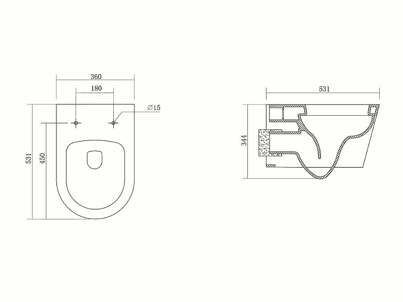 Унитаз подвесной безободковый 530х360х330мм, тонкое сиденье Termodur с механизмом плавного закрывания Soft Close, крепеж