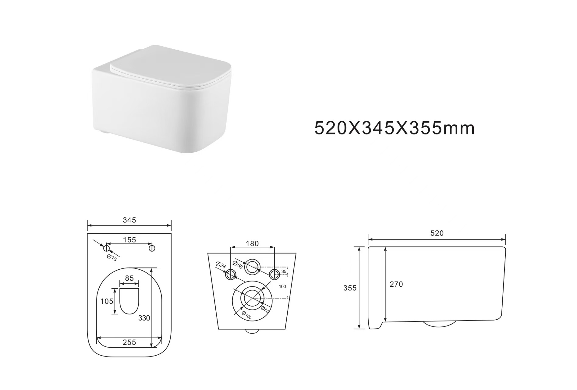 Унитаз подвесной Aquatek Квадро белый (AQ1515T-00)