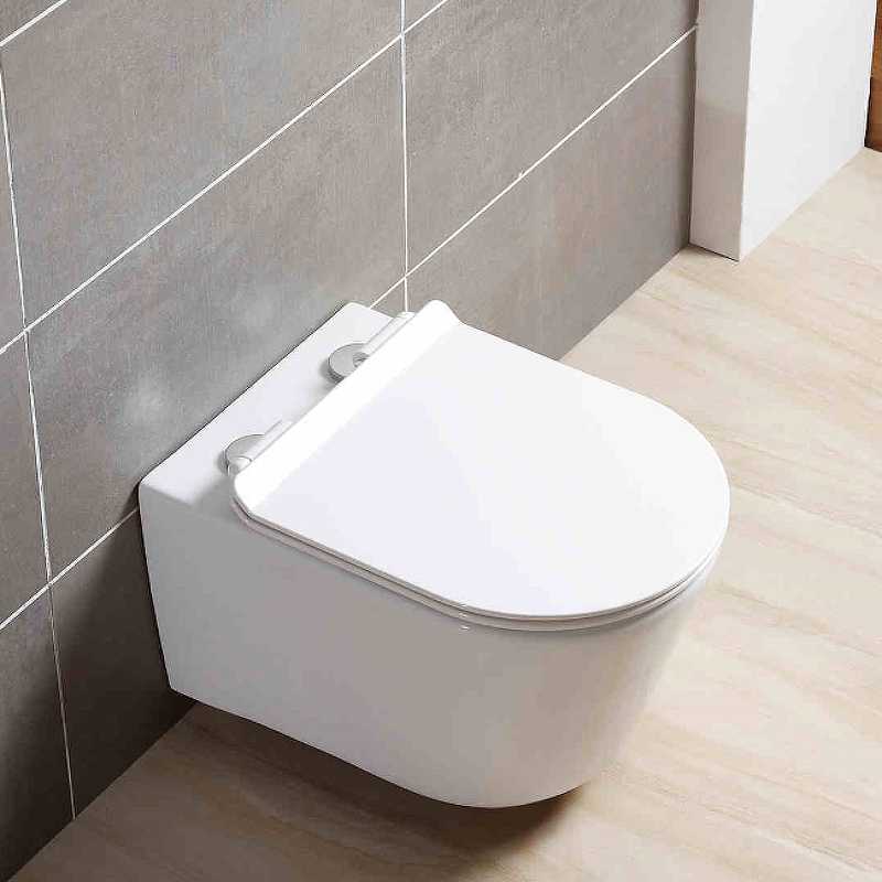 Унитаз подвесной безободковый 530х360х344мм, тонкое сиденье Termodur с механизмом плавного закрывания Soft Close, крепеж