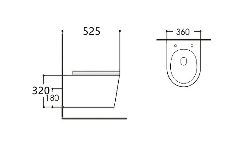 Унитаз подвесной безободковый 525х360х320мм, тонкое сиденье Termodur с механизмом плавного закрывания Soft Close, крепеж