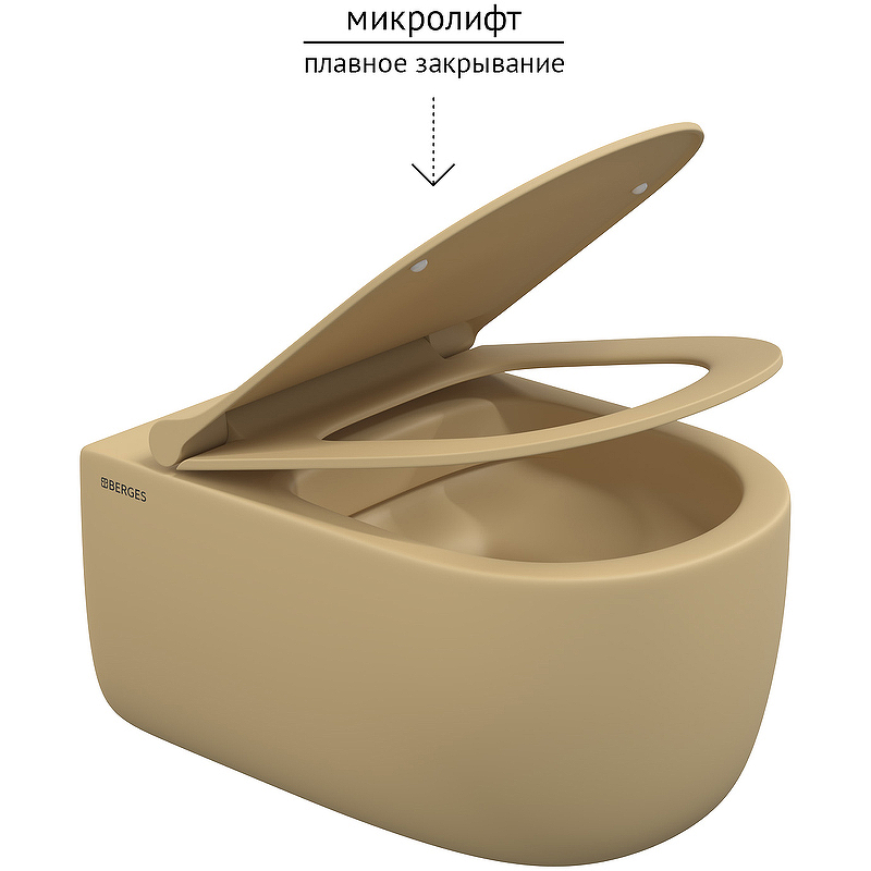 Унитаз BERGES подвесной EGO XL матовый кашемир Rimless 54 см, сиденье EGO XL Slim SO матовый кашемир, микролифт , быстросъем