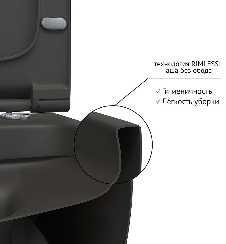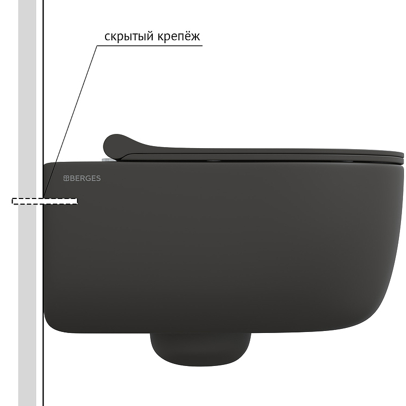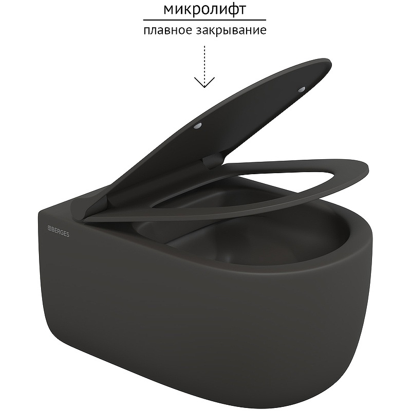 Унитаз BERGES подвесной EGO XL матовый антрацит Rimless 54 см, сиденье EGO XL Slim SO матовый антрацит, микролифт , быстросъем