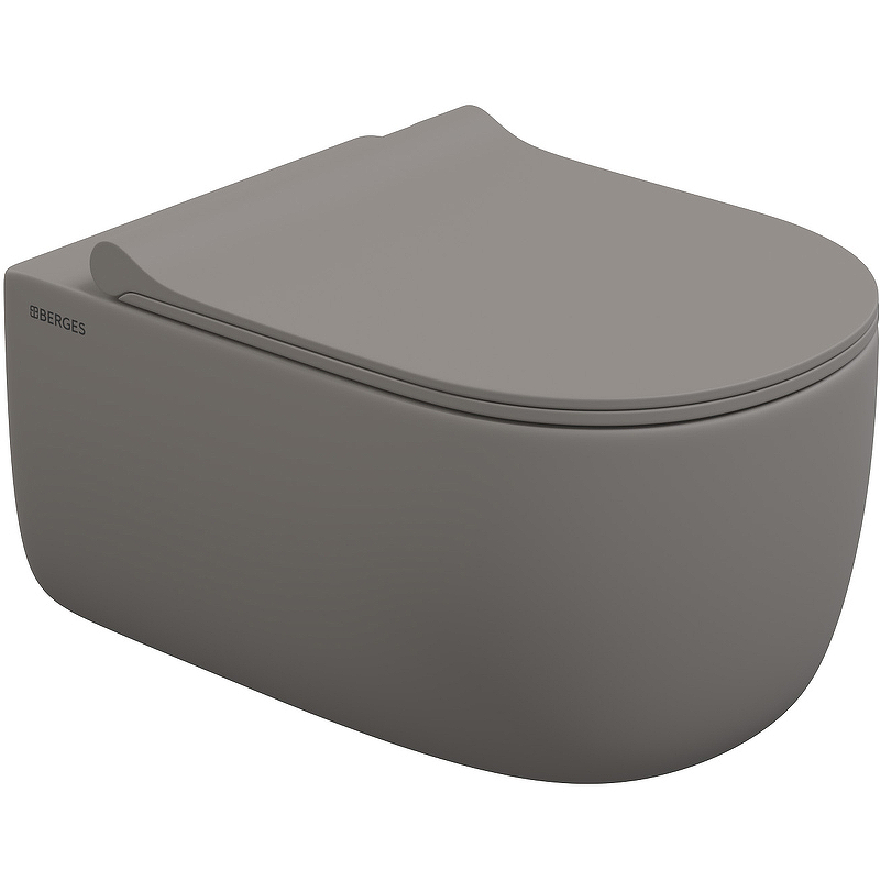 Унитаз BERGES подвесной EGO XL матовый серый Rimless 54 см, сиденье EGO XL Slim SO матовый серый, микролифт , быстросъем