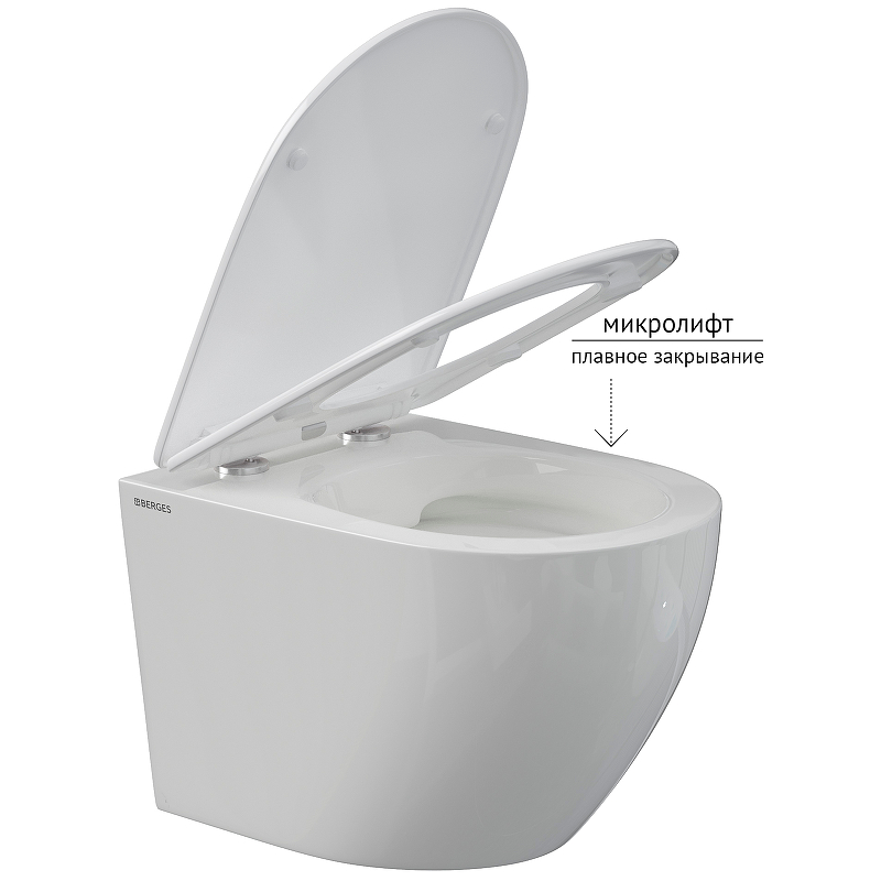 Унитаз подвесной BERGES OKUS Rimless 49 см, сиденье дюропласт, микролифт, быстросьем