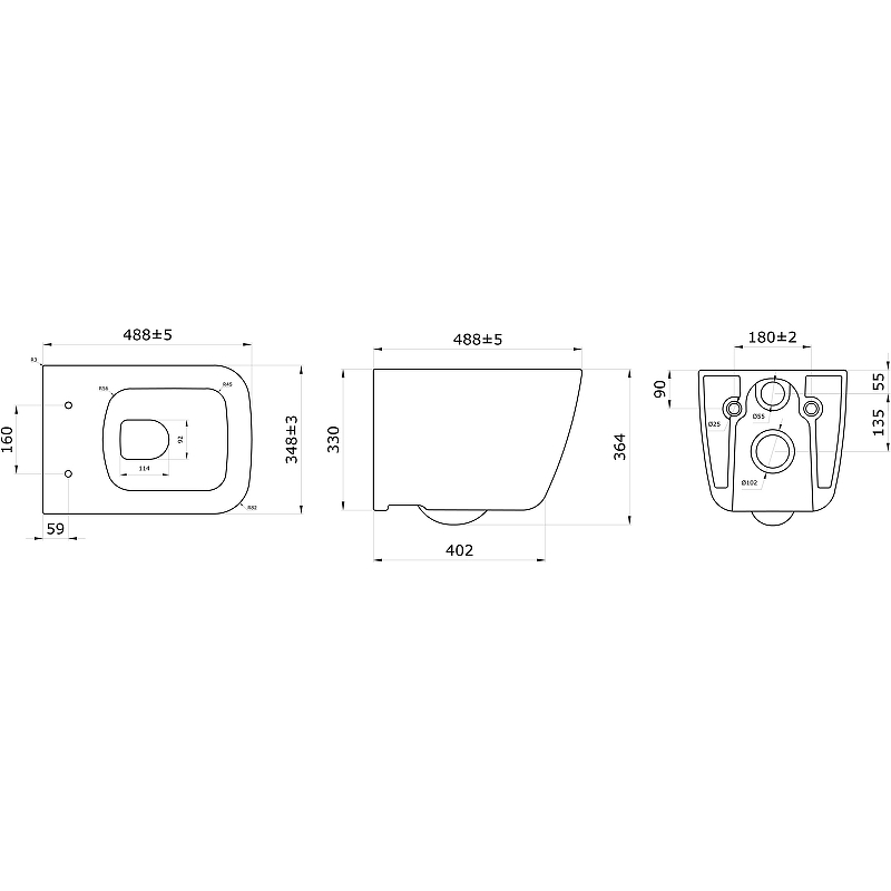 Унитаз BERGES подвесной QUATTRO S 49 см, сиденье дюропласт Quattro Strati Slim SO, микролифт, быстросъём