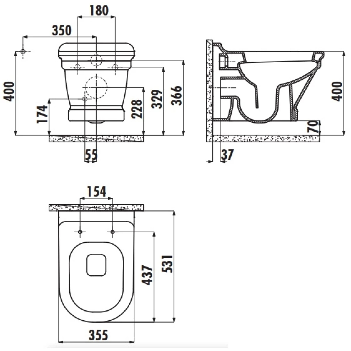 Унитаз подвесной Creavit Antik 35,5x53,1x37 базальт (AN320-11BM00E-0000)