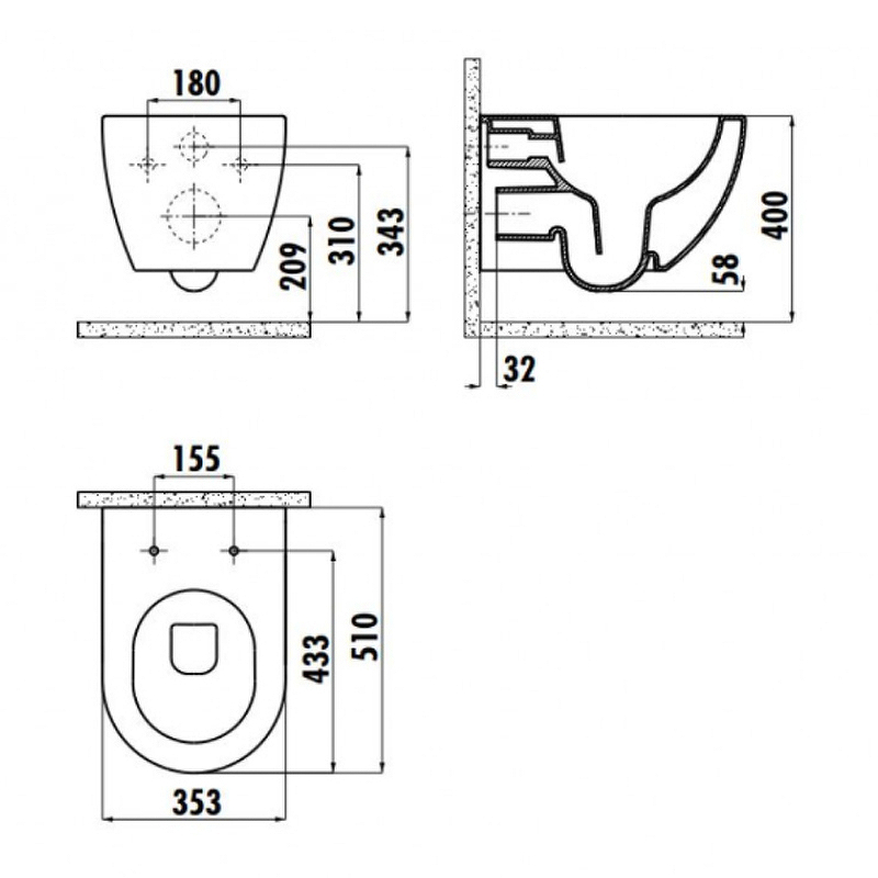 Унитаз подвесной Creavit Free безободковый черный матовый (FE322-11SM00E-0000)