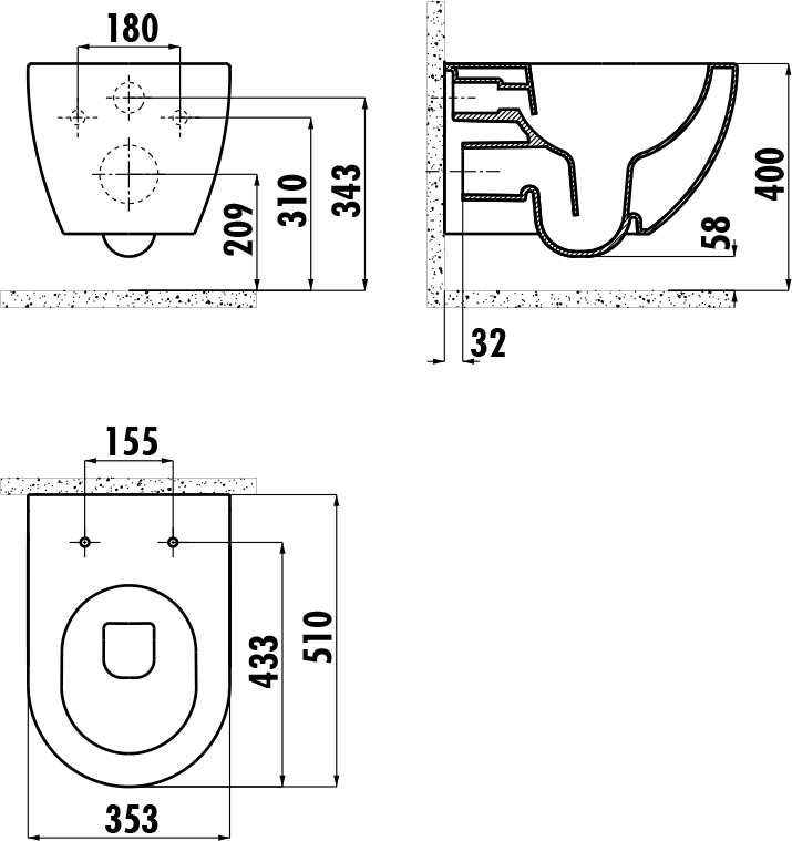 Подвесной унитаз Creavit Free FE322-00CB00E-0000 с функцией биде, безободковый, обеспечивает полную гигиену. Экологически чистые материалы, сертификат EPD.