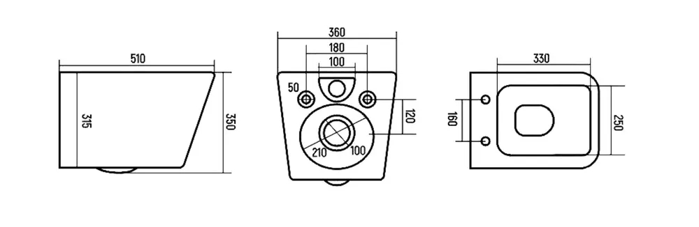 Унитаз подвесной DLC 510x360x350 безободковый микролифт, белый (D110D100251)