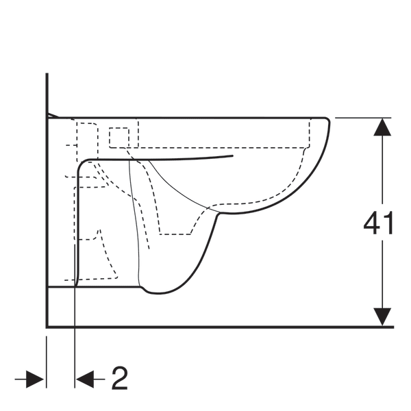 Подвесной унитаз вертикальный смыв Geberit Renova Plan, Rimfree - с ободком, объем смыва 4,5 л., завышенный верхний край 41 см при стандартной высоте крепления.