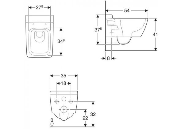 Подвесной унитаз вертикальный смыв Geberit Xeno, закрытая форма, Rimfree - чаша подвесного унитаза обтекаемой прямоугольной формы, выполнена в белом цвете, ровный корпус без труднодоступных мест упрощает чистку сантехники. Технология Rimfree упрощает чистку сантехники — в чаше нет ободка и скрытых полостей под ободком, в которых скапливаются грязь и налёт, размножаются бактерии.