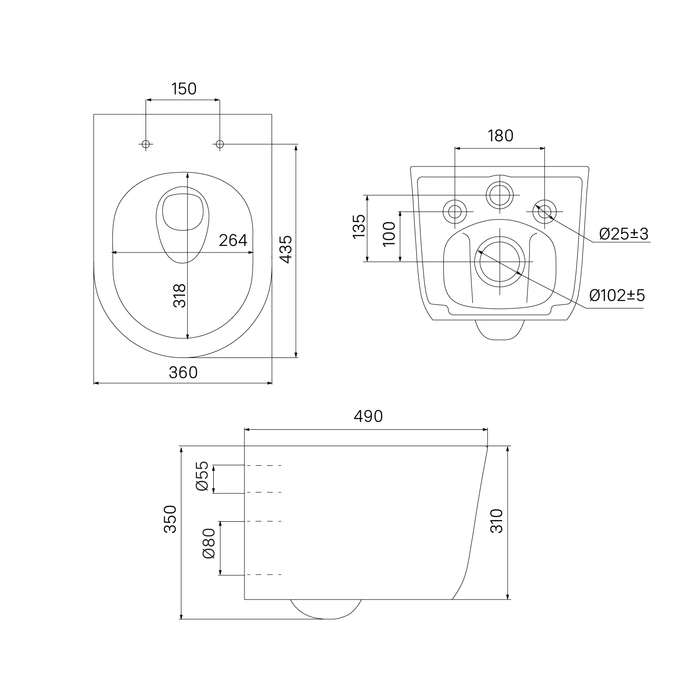 Подвесной унитаз, размер: 490x360x350, безободковый