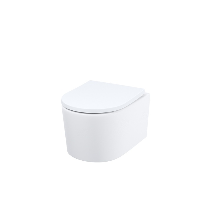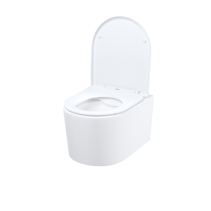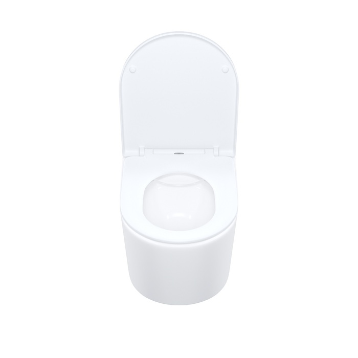 Унитаз подвесной безободковый с сиденьем из дюропласта с EasyFix и SoftClose. П Округлая форма чаши. Размер 490х370х340 мм мм (ДхШхВ). Без крепежа. Упаковка: картонная коробка.