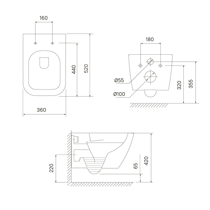 Подвесной унитаз, Размер:520*360*355 безободковый, вид смывающего потока : каскадный слив, с сиденьем из дюропласта с функциями Soft Close и Easy Fix, гарантия 25 лет