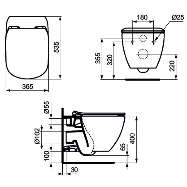 Унитаз подвесной Ideal Standard Tesi AquaBlade 365х535х335 (T007901)