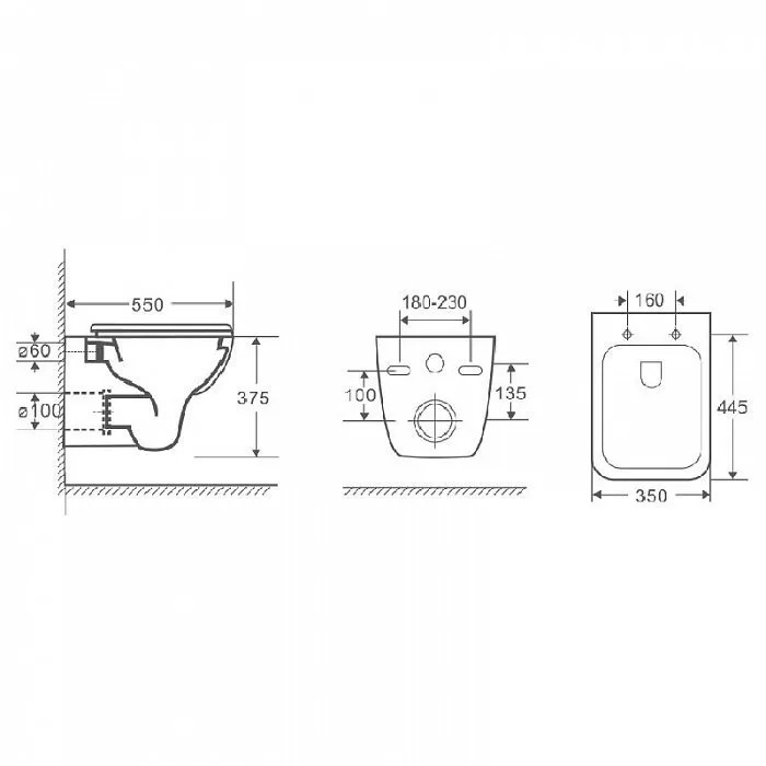 Унитаз подвесной Pavia безободковый с сидением микролифт 550x350x375 (AZ-2005)