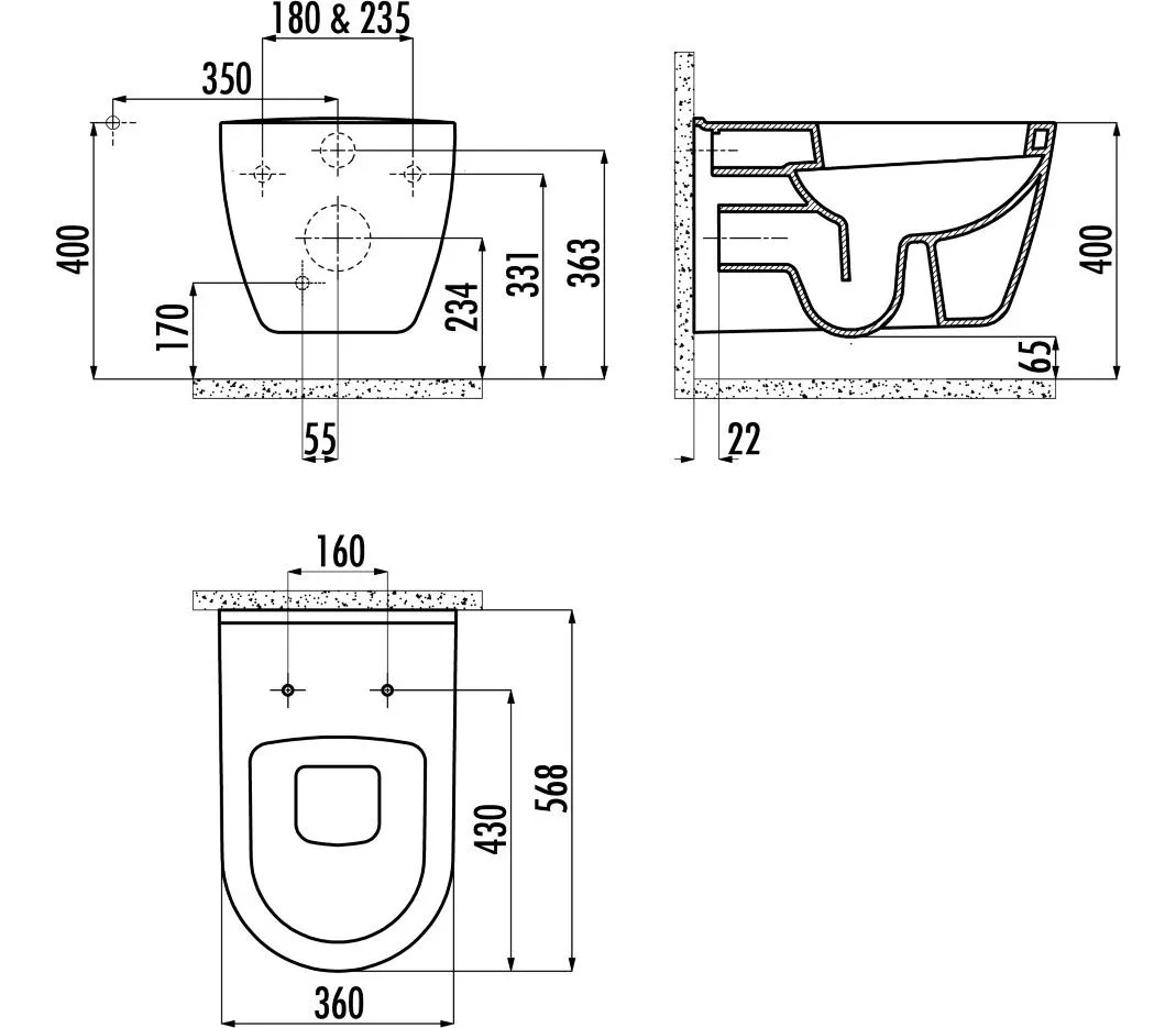 Унитаз подвесной с биде Creavit 36x56,8x33,5 белый (TP328.00000)