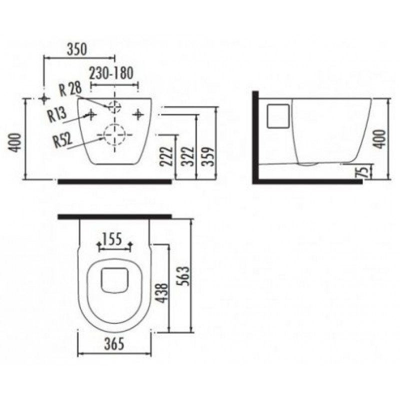 Унитаз подвесной с биде Creavit Favori 36,5x56,3x32,5 белый (FR320.00000)