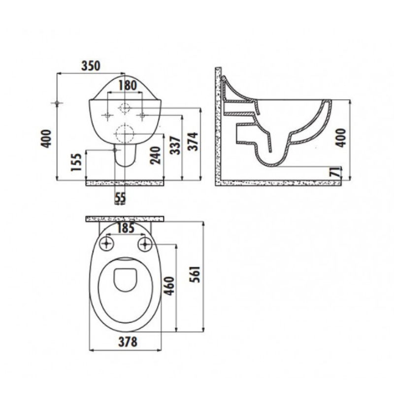 Унитаз подвесной с биде Creavit Foglia 37,8x56,1x32,9 белый (FG321-00CB00E-0000)
