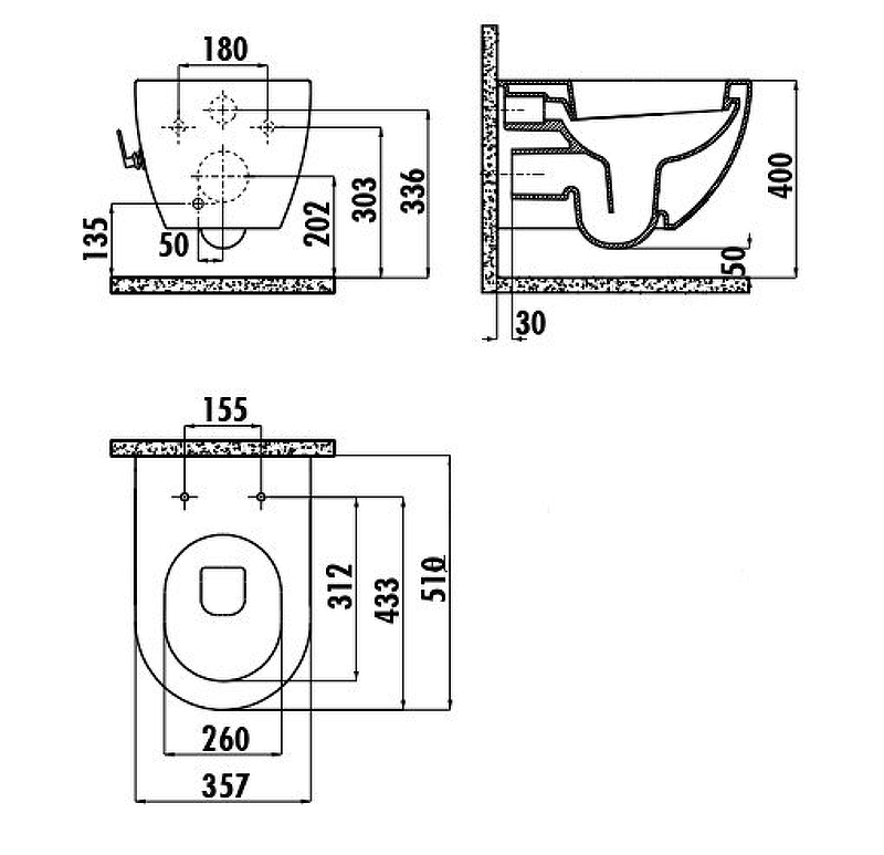 Унитаз подвесной с биде Creavit Free 35,7x51x35 белый (FE320-34CB00E-0002)