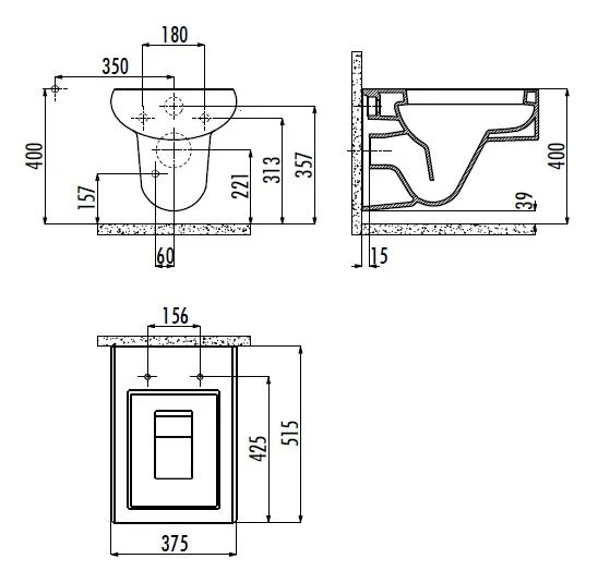 Унитаз подвесной с биде Creavit Slim 37,5x51,5x36,1 белый (SM320.00000)