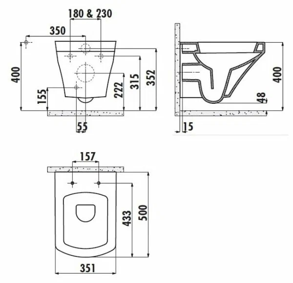 Унитаз подвесной с биде Creavit Sorti 35,1x50x35,2 белый (SR320-00CB00E-0000)