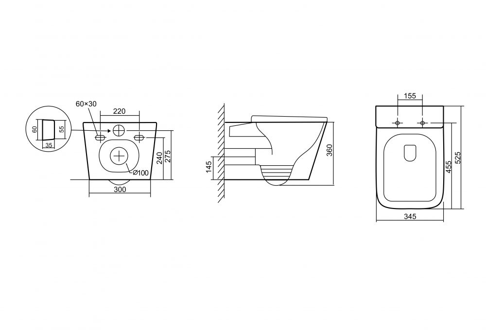 Унитаз подвесной Triton Verso с сиденьем микролифт, белый (VO-3032)