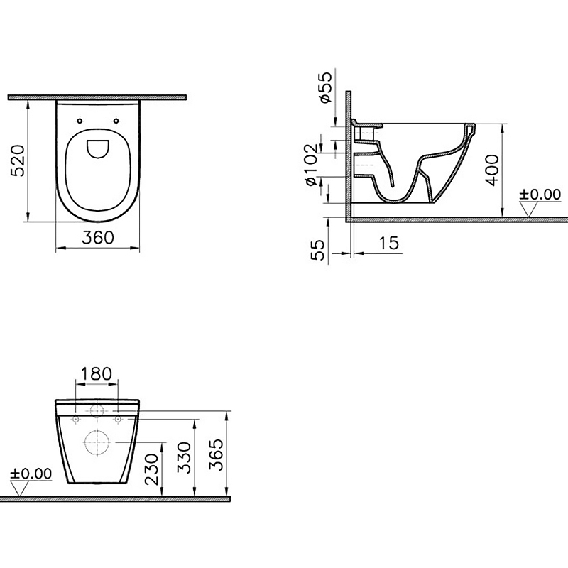 Покрытие: антибактериальная глазурь VitrA Hygiene (уничтожает 99.9% бактерий и препятствует их распространению).