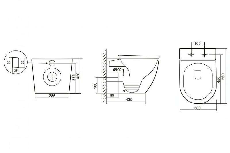 Унитаз приставной Abber Bequem безободковый, смыв торнадо белый (AC1111T)