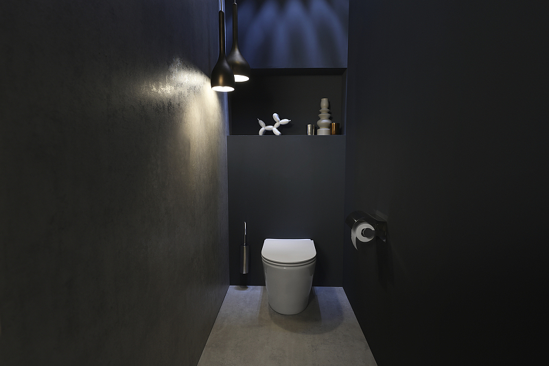 Обтекаемая форма, прилегающая вплотную к стене, скрытые крепления для эстетичного вида и удобства очистки.
